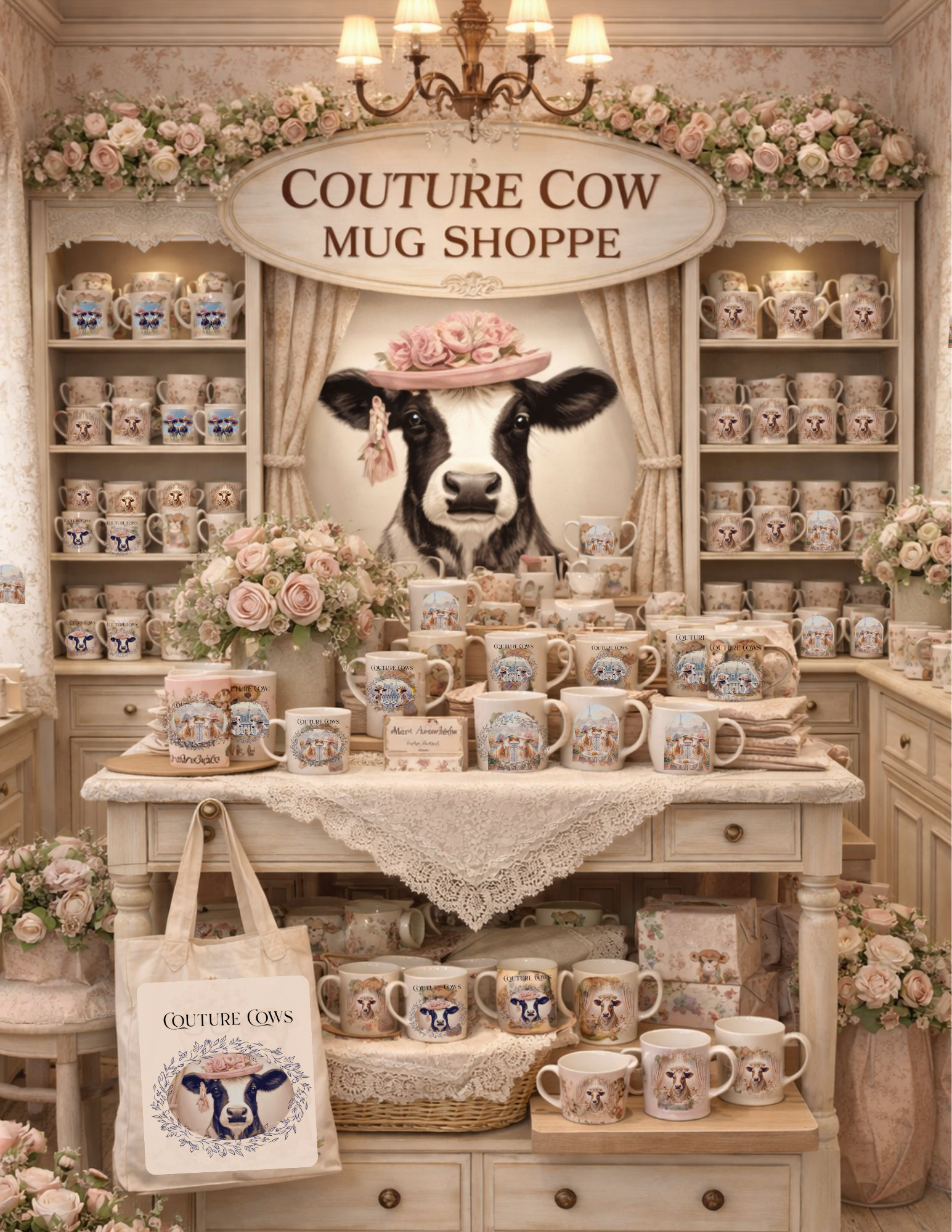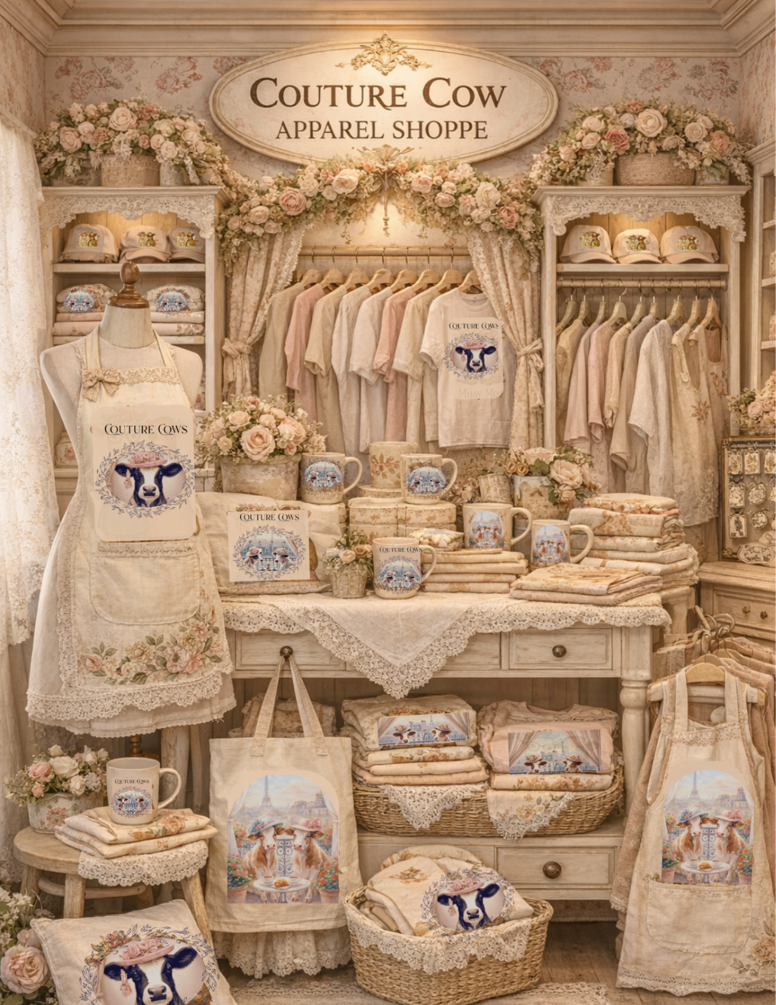 Couture Cows celebrates the joy of whimsy layered with intention. It’s where humor meets heart, where country charm meets style, and where a gentle smile is always welcome. Designed to bring lightness, comfort, and a wink of personality into everyday life, this collection invites you to loosen the reins, enjoy the moment, and remember that sometimes the most refined thing you can do is simply enjoy the view. Life is better when it’s a little more moovelous.