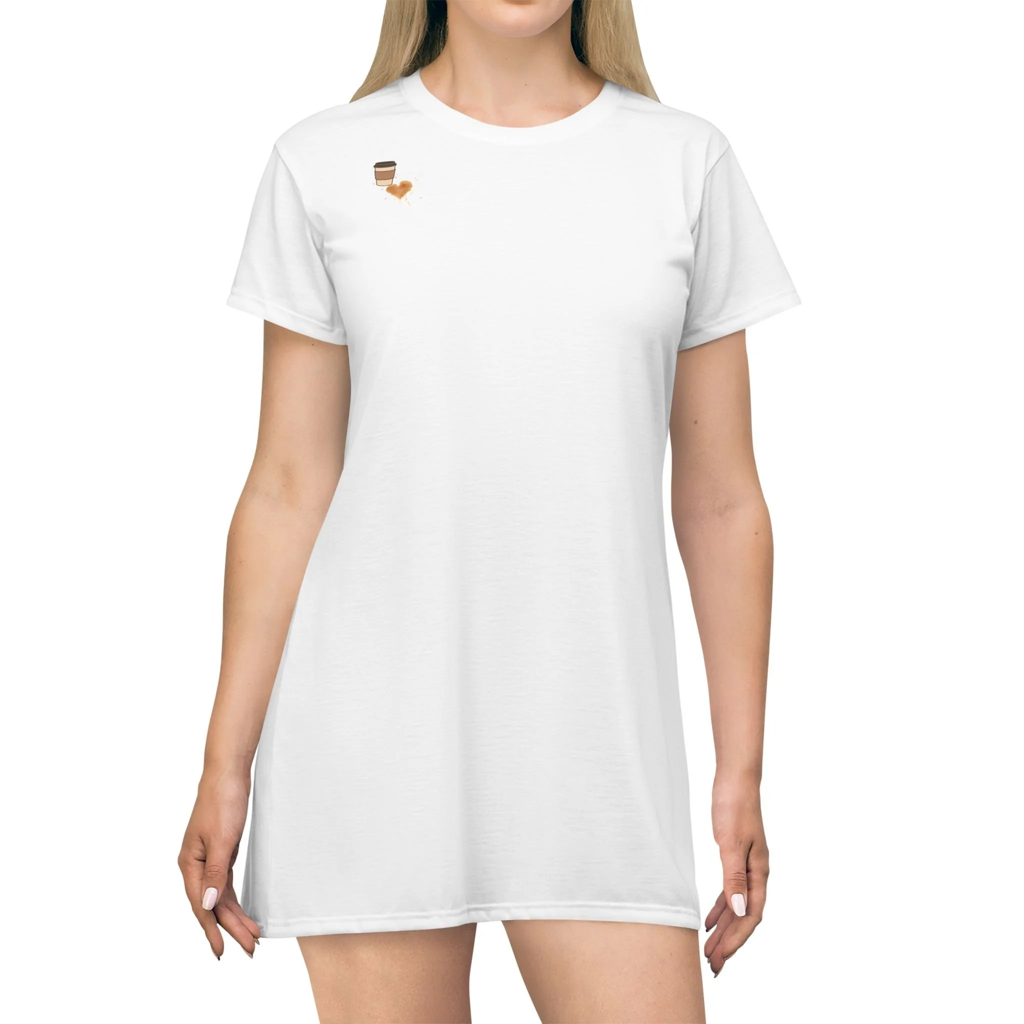 Comfort meets playful personality. This relaxed T-shirt dress showcases a whimsical coffee cow design paired with a humor-filled phrase that perfectly captures morning moods. Easy to wear, effortlessly cute, and ideal for lounging, casual outings, or cozy weekends.