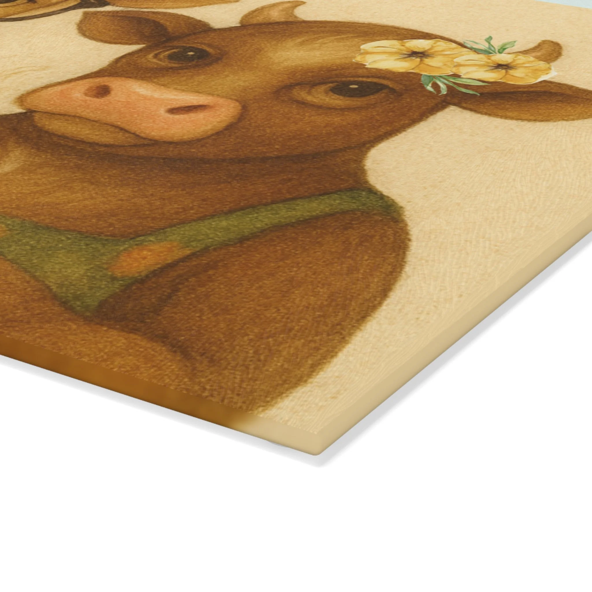 A charming blend of function and farmhouse whimsy. This glass cutting board features an adorable cow coffee friends design that adds warmth and personality to your kitchen. Durable, easy to clean, and lovely enough to display between uses.