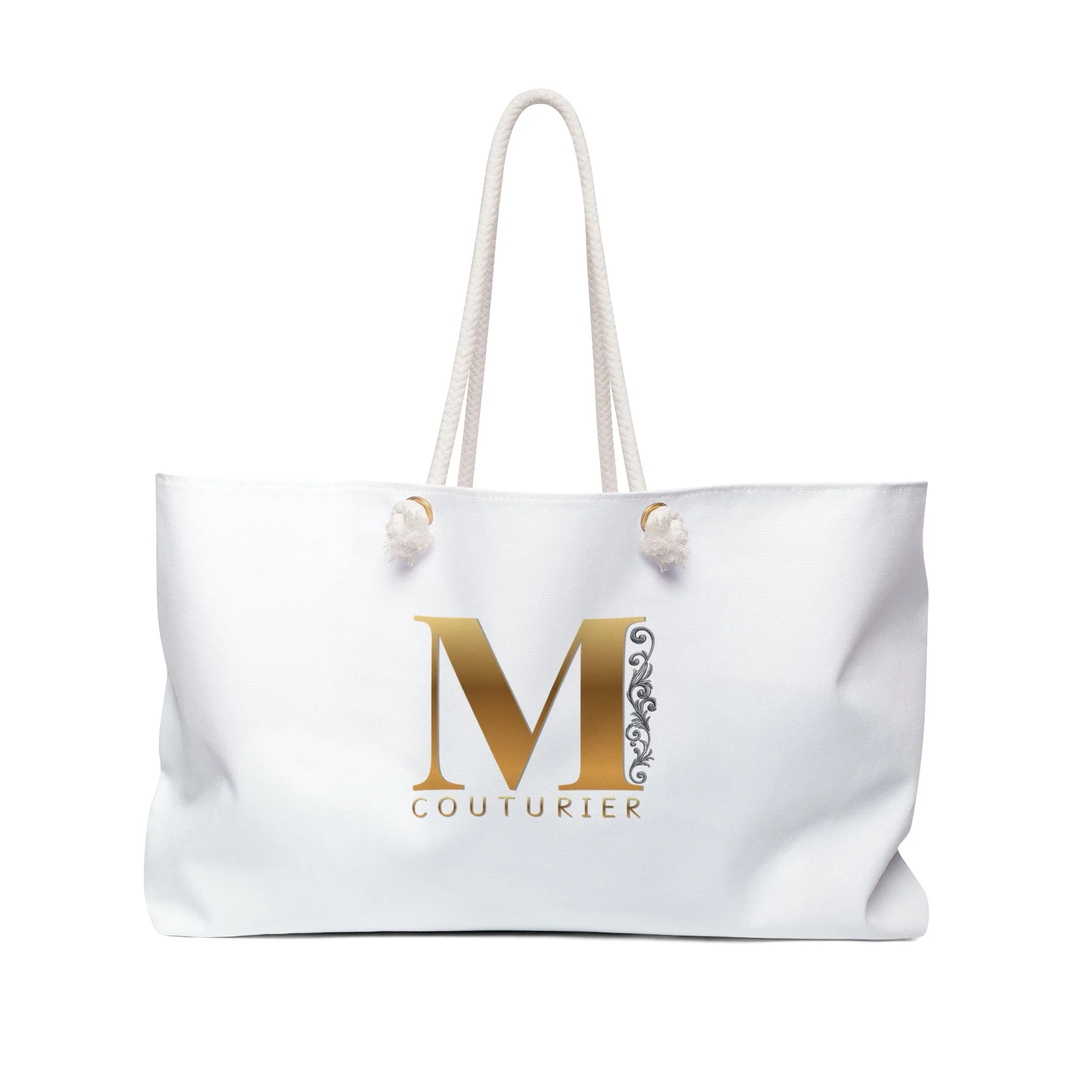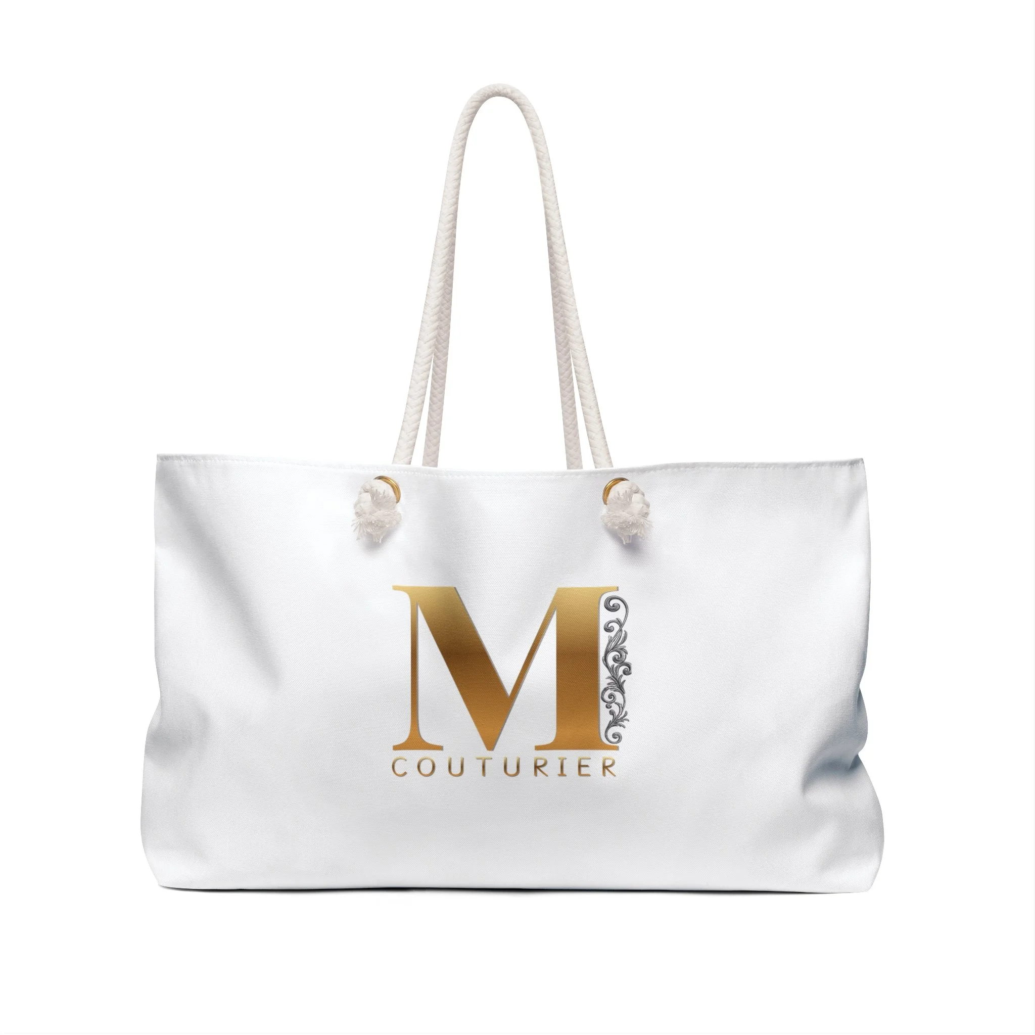Because your initials deserve a life as stylish as you do. A light, elegant weekender that moves with you—whether you’re slipping away for a coastal weekend or stepping into a studio day filled with fittings and notes. The roomy 24" x 13" T-bottom holds layered outfits, shoes, and a small laptop, while the soft cream rope handles sit comfortably on the shoulder. The smooth spun-poly exterior resists wrinkles so the bag keeps its clean, crisp look without fuss. Inside, a cream cotton-blend lining gives a soft contrast and protects contents. Subtle gold-and-silver logo detailing adds a quietly refined edge that reads luxe without shouting. Assembled in the USA from globally sourced parts, this bag is built to travel, commute, and carry the little moments that make a weekend feel like an escape.