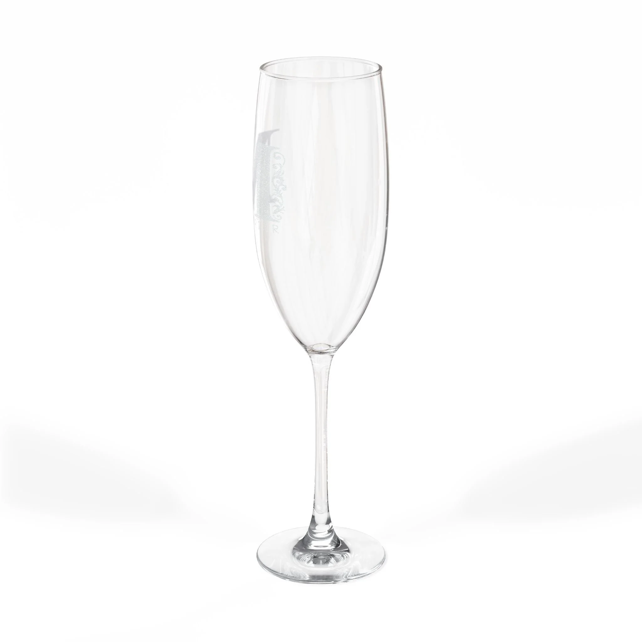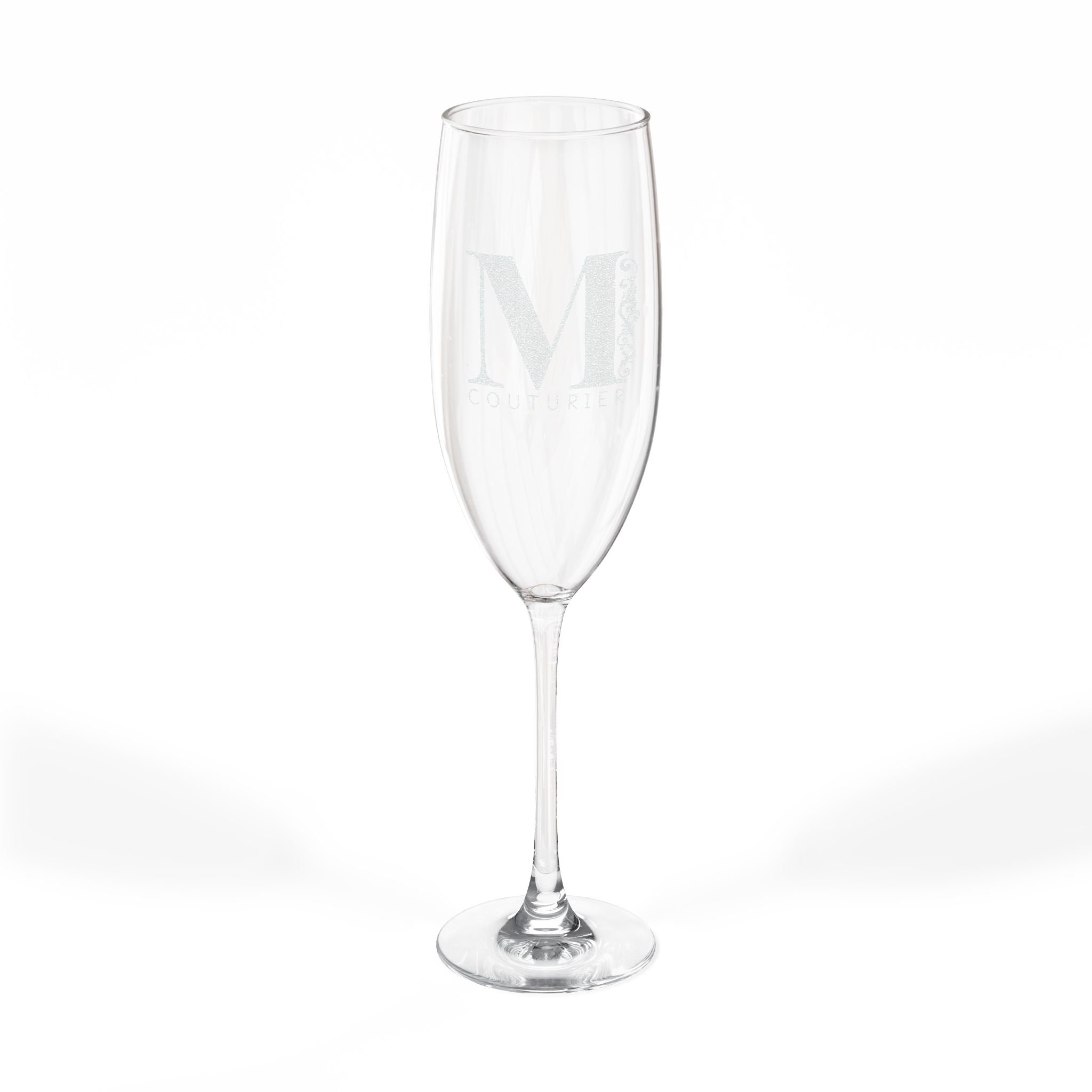 A slender, engraved champagne flute that turns quiet moments into keepsakes. The clear, crystal-like glass carries a single refined gold initial—subtle, personal, and elegantly understated. Raise it at small victories, anniversaries, or slow evenings; it catches the light and the memory alike. The etched design is permanent, giving the glass a tactile, heirloom quality that weathers regular use while holding its composed, celebratory presence. Whether nestled on a dinner table or waiting in a cabinet for a toast, this 8oz flute feels like a little ceremony each time you lift it.