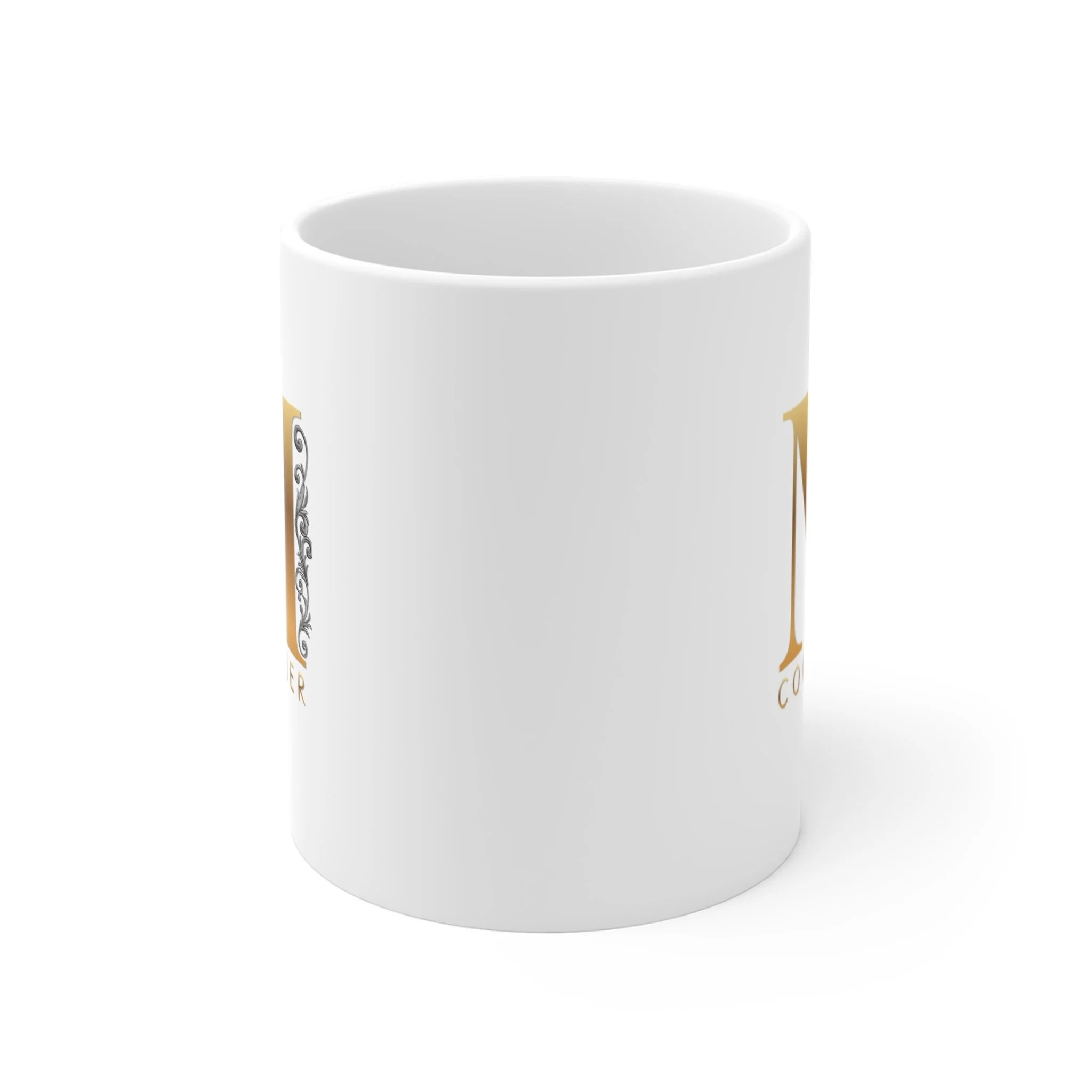 Morning light catches the gold initial on this ceramic mug and turns a slow minute into something a little more deliberate. The clean white surface makes the metallic M and its delicate filigree pop, while the rounded rim and comfortable C-handle make sipping feel simple and steady. This is the kind of mug you reach for when you need five quiet minutes before the day begins, or when you return from errands and want something warm in your hands. It pairs well with leisurely weekend breakfasts, focused home-office hours, and evenings spent journaling or planning. The look reads refined without being fussy — a small, everyday touch of elegance that settles into your routine.