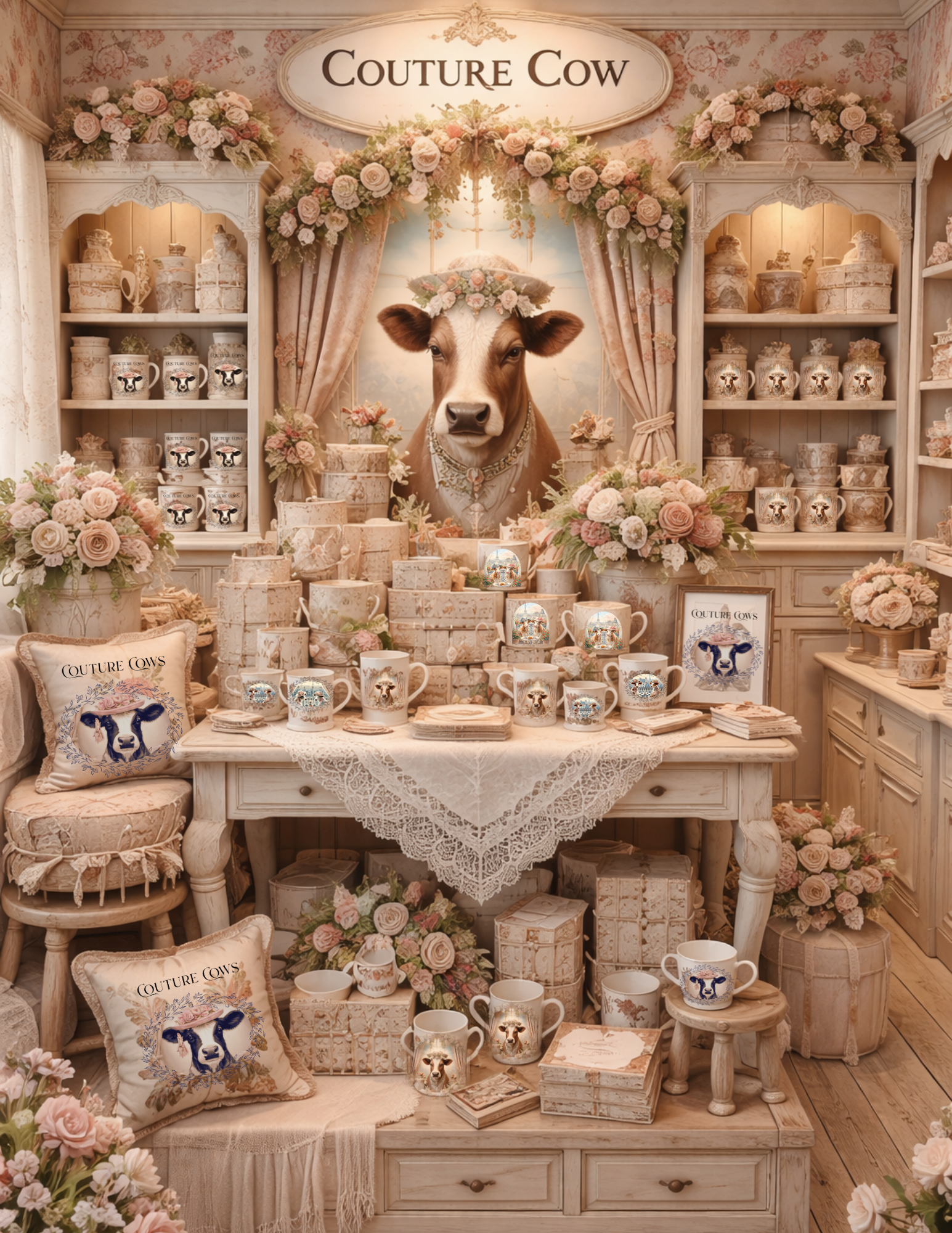 Where countryside charm meets Parisian café style. This whimsical apron showcases a beautifully illustrated couture cow design, bringing playful elegance into your kitchen. Ideal for cooking, baking, or hosting, it blends function with boutique personality.